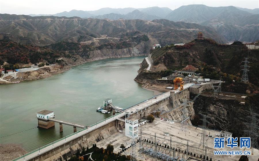 这是10月24日无人机拍摄的刘家峡水库大坝。 新华社记者 陈斌 摄