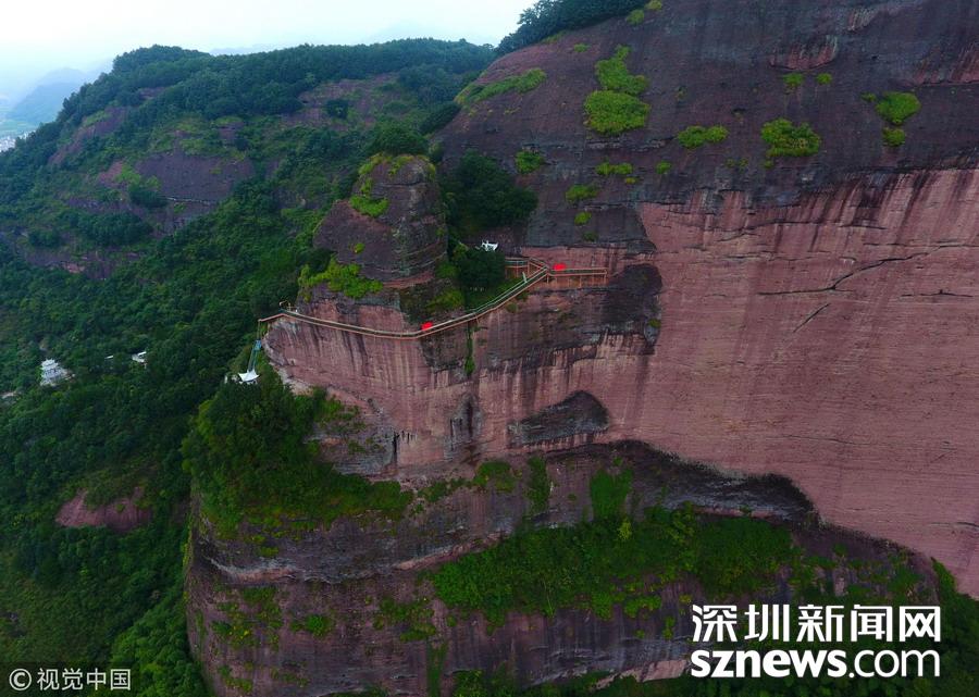 深圳新闻网讯 武义县大红岩景区在227500平方悬崖上建造的玻璃桟道,通过有关部验收,10月1日将开放接待游客。武义县大红岩是国家级风景名胜区,今年景区利用长650米、高350米的悬崖峭壁建造玻璃桟道,为景区又增添了一道壮观的景点。