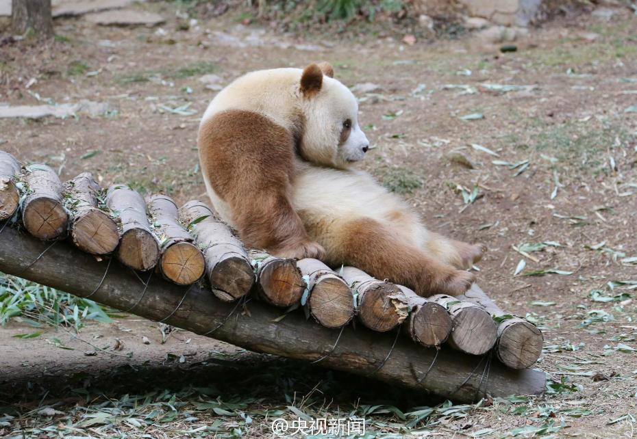 秦岭大熊猫野化培训佛坪基地,7岁的棕色大熊猫七仔是目前全世界唯一能看到的棕色大熊猫活体。今年是它在基地过的第二个冬天,每逢下雪,七仔就兴奋地满园子跑,变身“雪花熊”。央视记者李志王志杰 图片来源:央视新闻官方微博