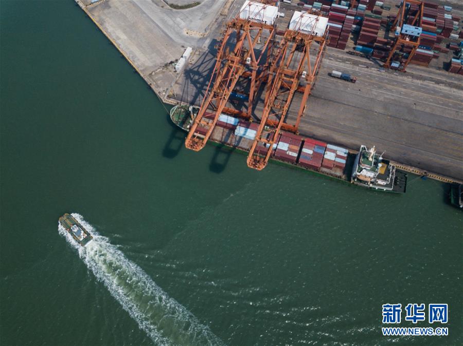 一艘海轮停泊在广西钦州保税港区码头装运货物(11月3日无人机拍摄)。