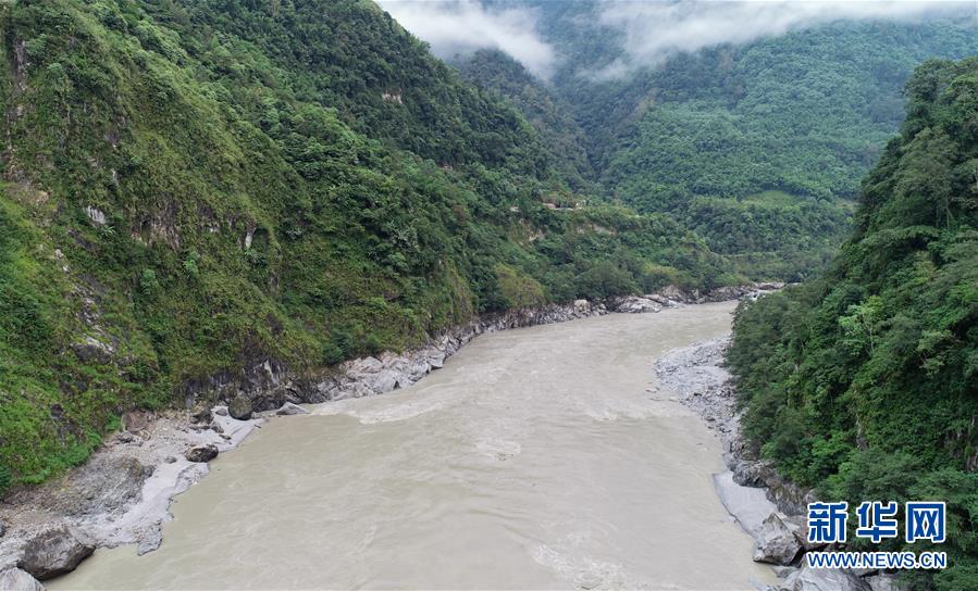 洪峰过境后的西藏雅鲁藏布江墨脱段局部画面(10月20日无人机拍摄)。  新华社记者刘东君摄