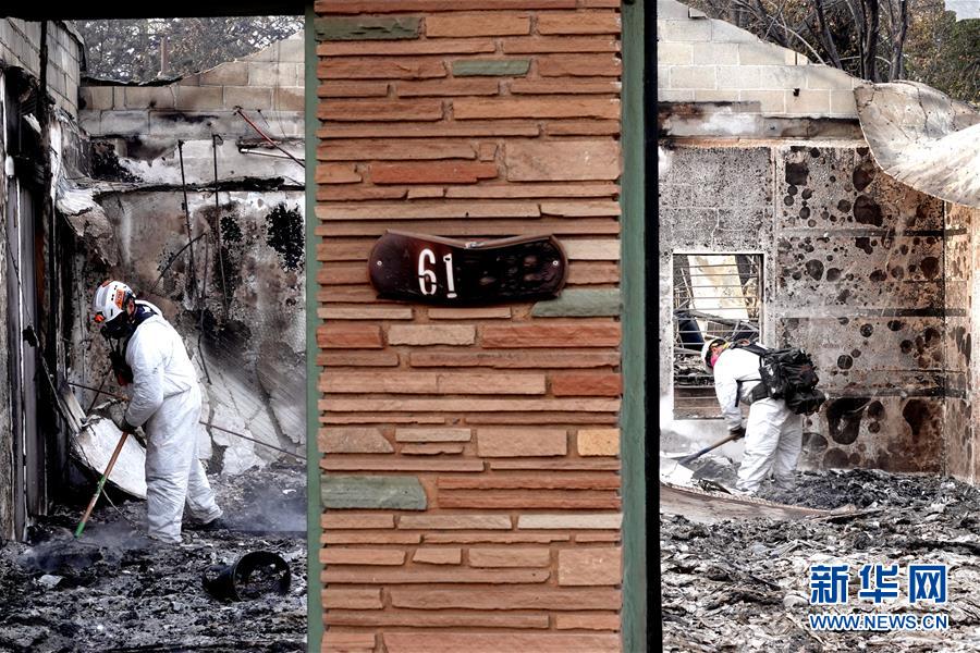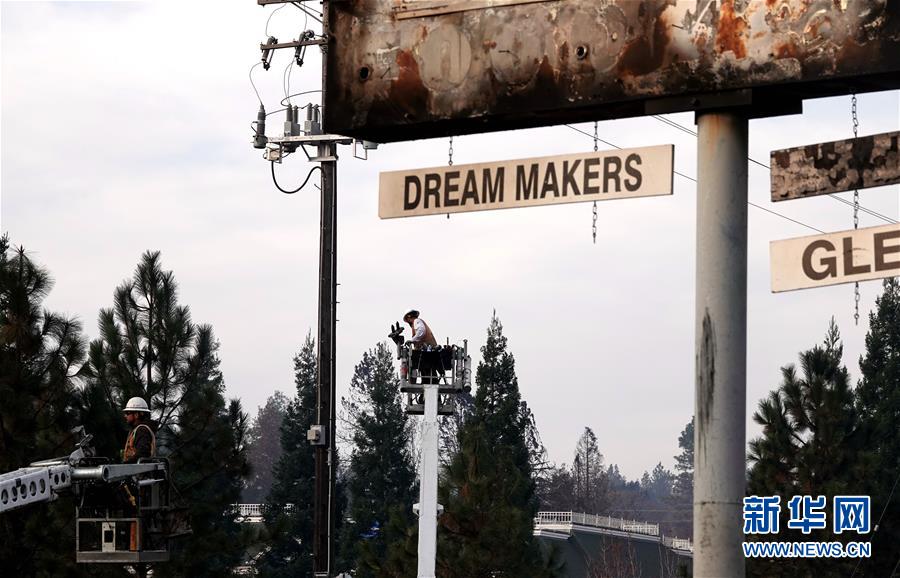 11月20日,在美国加利福尼亚州比尤特县天堂镇,救援人员在灾区工作。