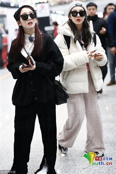 2018年12月3日,北京,“火箭少女101”全体成员现身机场前往国外录制团总综。其中孟美岐戴着墨镜,一身全黑运动装扮,大步流星气场超强,杨芸晴、yamy、杨超越等成员紧随其后,大家还一起在机场玩起自拍,好不欢乐。
