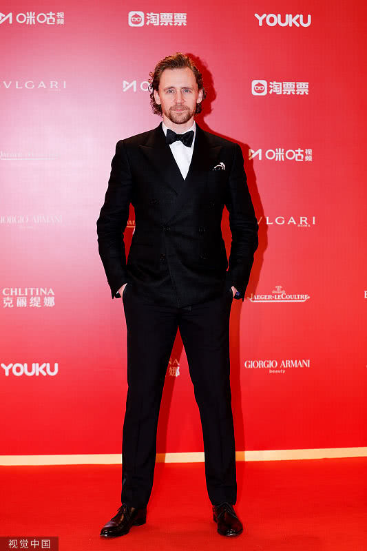 2019年6月23日,第22届上海电影节闭幕红毯上的“抖森”汤姆·希德勒斯顿。