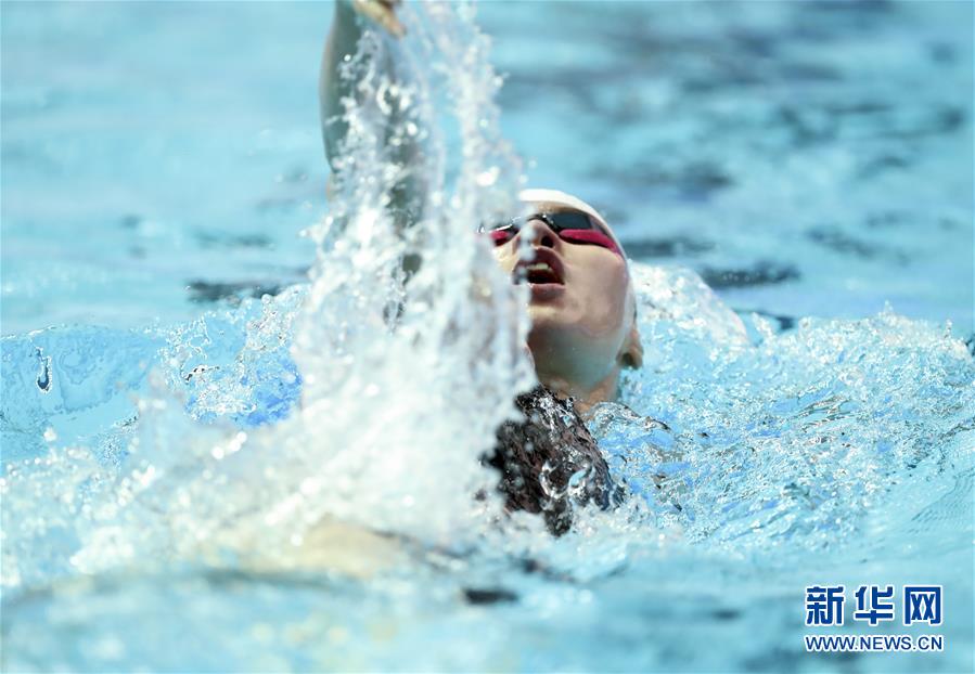 7月22日,中国选手陈洁在比赛中。当日,在韩国光州举行的2019国际泳联世界游泳锦标赛女子100米仰泳预赛中,中国选手陈洁以1分00秒64的成绩位列第15名,晋级半决赛。新华社记者李钢摄