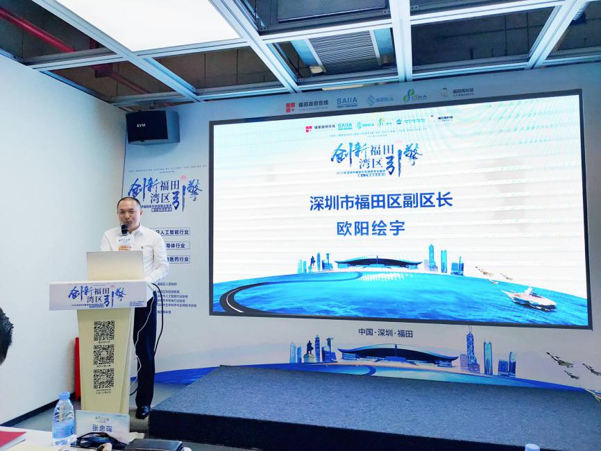 福田区人民政府欧阳绘宇副区长、福田区科技创新局张忠晖局长、人工智能行业协会郎丽艳执行会长联合启动“创新福田,湾区引擎”2020年福田区人工智能科创政策正式发布仪式。