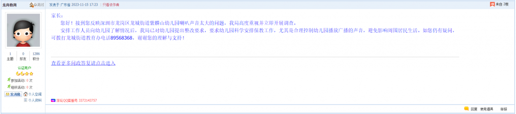 各职能单位如需对网友反映的问题进行回应,可在深圳论坛注册官方账号并通过认证,回帖进行回应。