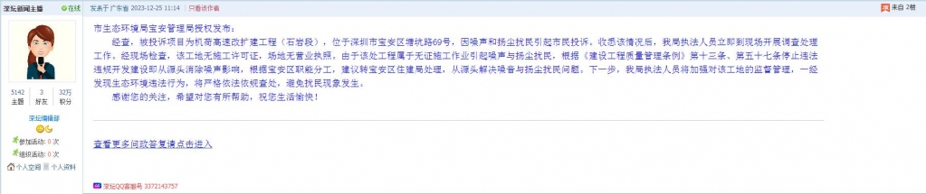 各职能单位如需对网友反映的问题进行回应,可在深圳论坛注册官方账号并通过认证,回帖进行回应。