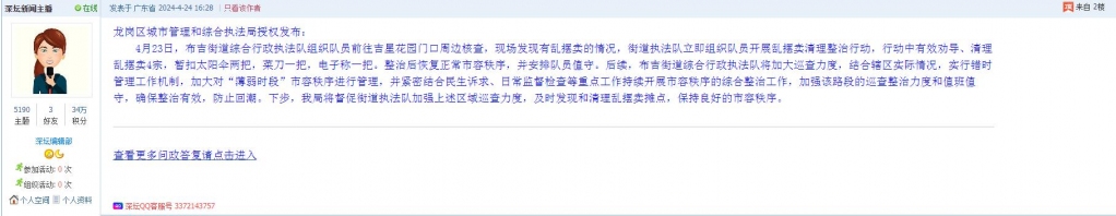 各职能单位如需对网友反映的问题进行回应,可在深圳论坛注册官方账号并通过认证,回帖进行回应。