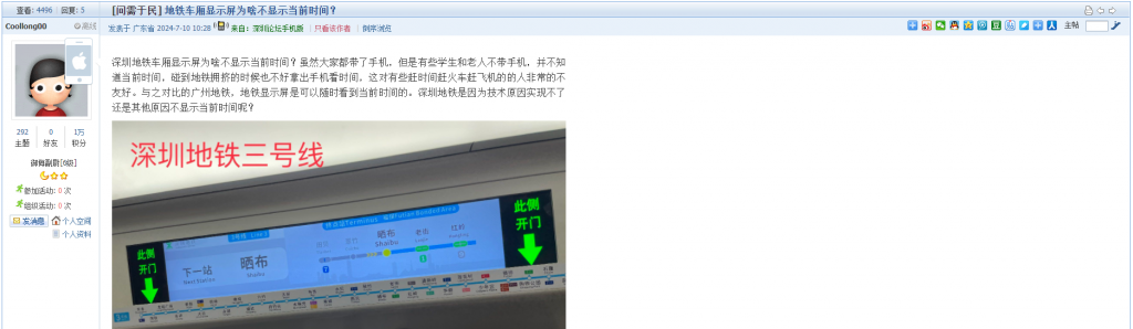 15. 帖文《地铁车厢显示屏为啥不显示当前时间?》