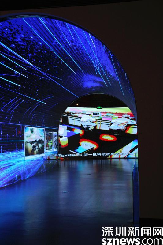 宏大的自主创新电视墙,可触碰式设计让来访者能随心所欲地查询想要了解的内容。